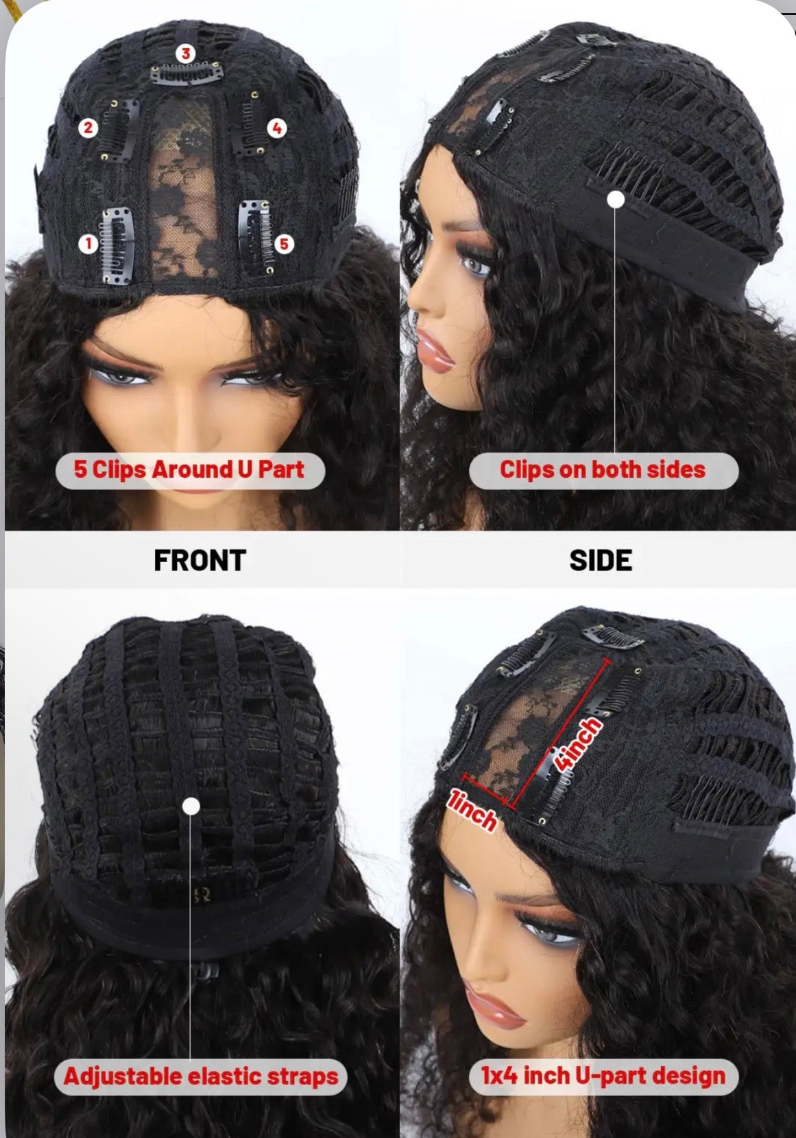 Transform your look effortlessly with this luxurious deep curly 24-inch U-part wig. Designed for versatility, it comes with a pre-cut lace for a flawless, natural hairline and a seamless fit. The deep curly texture adds volume and movement, giving you that full, bouncy look without the hassle of styling.